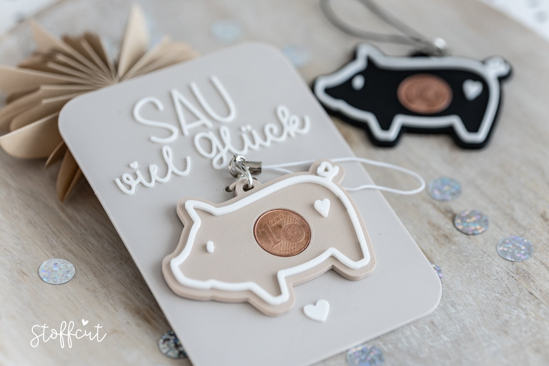 Mit diesem süßen Schweinchen Anhängern und Karten erhältst du eine liebevoll gestaltete 3D-Druckdatei in den Formaten STL und 3MF, mit der du ganz leicht bezaubernde Karten herstellen kannst. Perfekt für Silvester, Neujahr, Prüfungen und vieles mehr.